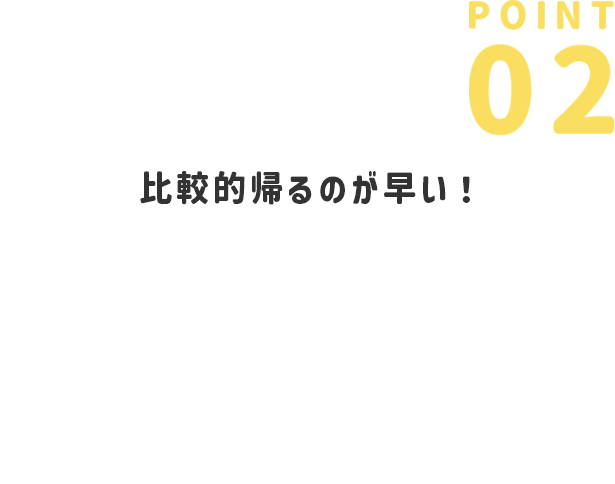 飲食バイトなどに比べて帰りが早いのも魅力!自炊をしたり、 ドラマをみたり、プライベートの時間も充分確保できますよ!