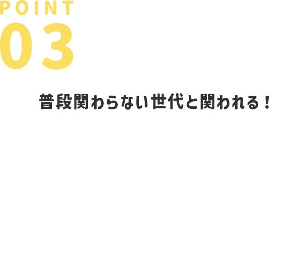 生徒は小学生~高校生が多く、普段の生活ではなかなか関われない世代との絡みは たくさんの刺激を受けるはず!流行りにも敏感になれます(笑)